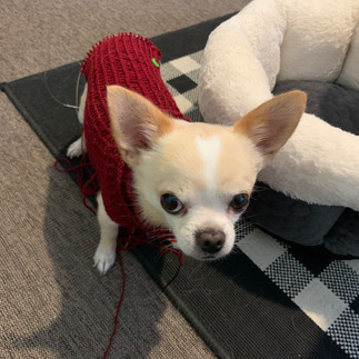 Mit dem Rest der Wolle vom Cardigan stricke ich für Mylo ein Wintermäntelchen, erstens gibt diese 100% Merino Wolle sicher warm und zweitens steht ihm die Farbe fantstisch.
