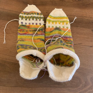 das war ein absolut genialer Tag. Die zwei obigen Strickprojekte sind aus den zwei Workshops, die ich gebucht habe. Tja und unverhofft kommt man da zu weiteren Projekten..... grins. Die haben mich quasi angesprungen und ich konnte mich nicht wehren...